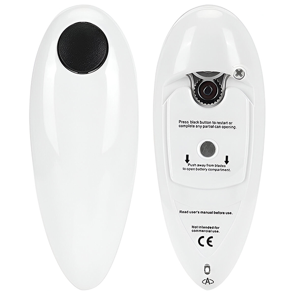 Wystarczy nacisnąć przycisk, aby szybko i bezpiecznie otworzyć puszki w różnych rozmiarach. Idealny dla każdego, w tym dla osób z artretyzmem, reumatyzmem lub innymi bólami dłoni.