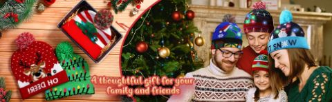 XBEANIE posiada wzory świątecznego jelenia i bałwanów oraz światła LED, które spełniają świąteczne potrzeby