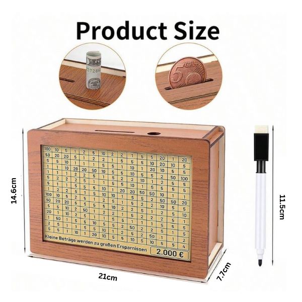 Drewniana skarbonka do oszczędzania pieniędzy | COINSAVE