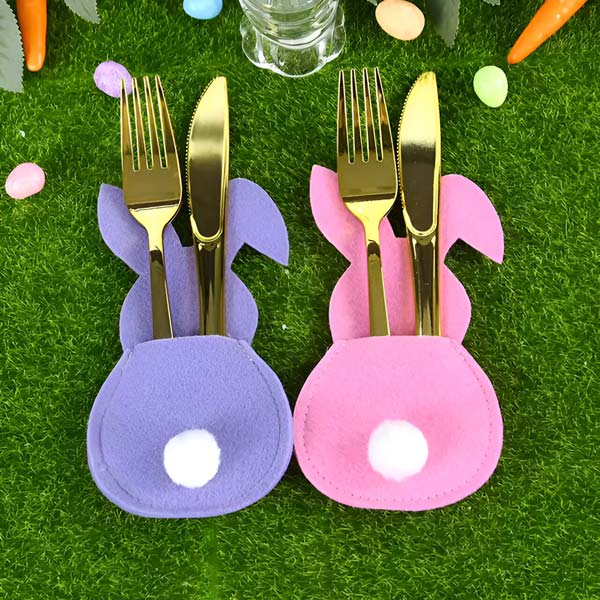 Uczyń wielkanocne posiłki wyjątkowymi dzięki uroczym uchwytom na sztućce w kształcie zajączków, które wprowadzą ciepło i radość na Twój stół.