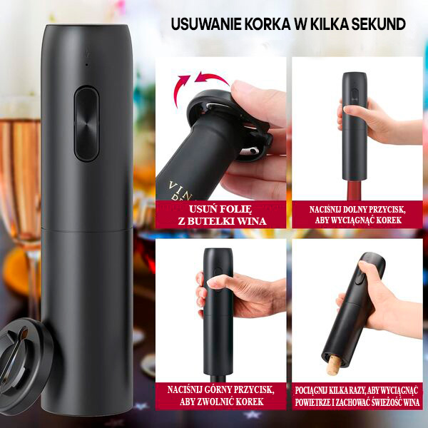 ✅ Bezproblemowe odkorkowywanie za pomocą jednego naciśnięcia