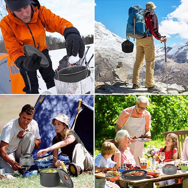 Gotuj wszędzie dzięki temu wszechstronnemu, kompaktowemu i lekkiemu zestawowi naczyń, idealnemu do domu, podróży i przygód na świeżym powietrzu.