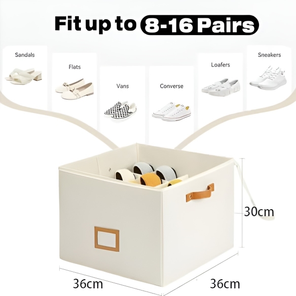 Organizer na buty SHOVERA został zaprojektowany tak, aby pomieścić 8-16 par obuwia, w tym sandały, kapcie i trampki, w kompaktowym rozmiarze 36x36x30 cm. Składana konstrukcja umożliwia łatwe przechowywanie, gdy nie jest używany, co czyni go idealnym rozwiązaniem do domów, akademików i sezonowego obuwia.