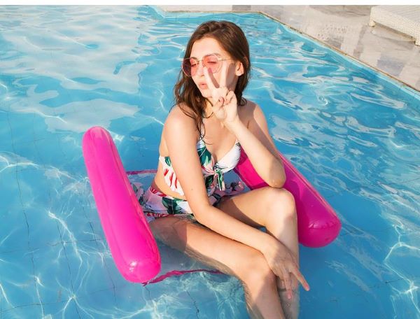 Nasz wygodny i stylowy hamak wodny wyposażony jest w środkowe siedzisko z siatki dla ochłody w wodzie, a także podpórkę pod głowę/szyję dla maksymalnego relaksu.