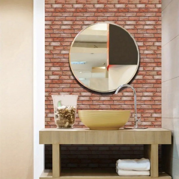 Trójwymiarowy wzór nadaje ścianom naturalną fakturę cegły, tworząc głębię i charakter. Idealny do salonów, sypialni, kuchni, korytarzy i biur.