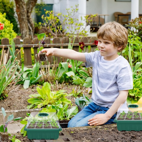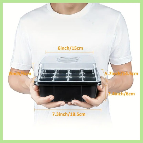 Każda taca ma 12 otworów i pokrywę z przełącznikiem wentylacyjnym. Teraz możesz kontrolować poziom wilgotności i zapewnić najlepsze warunki dla swoich sadzonek. Uprawiaj zdrowe, dobrze napowietrzone korzenie dla silniejszych roślin.