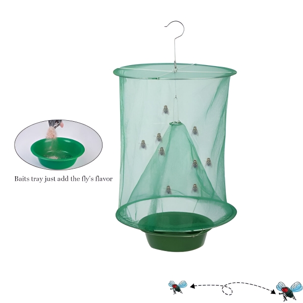 Muchy są naturalnie przyciągane przez przynętę na tacce. Po wejściu do pułapki nie są w stanie uciec i ostatecznie umierają z powodu odwodnienia i głodu. Metoda ta zapewnia wysoki wskaźnik wyłapywania much bez konieczności stosowania szkodliwych środków chemicznych. Skutecznie zmniejsz populację much w swojej okolicy.