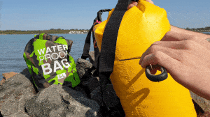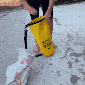 2. Teraz wrzuć torbę do wody! Obserwuj, jak unosi się na wodzie, chroniąc przy tym wszystkie Twoje skarby